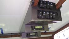The final wiring setup includes a fuse box above the console, that is powered by a heavy solenoid relay at the battery, controlled by the key.  This brings both radios, and the switch panel alive when the key is turned on.  Antennas are mounted either side of the front basket using mirror mount NMO brackets.  Both antennas are no-ground-plane antennas.